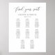 Classic Calligraphy Script Wedding Seating Plan Find Your Seat. Personalized Simple Minimalist Seating Chart for 80 guests (8 tables). Just click the customize further link, shown under the text personalization area on the right, and choose your custom color background. This sign poster template makes it fast and easy to create stunning additions to your wedding decor. Signs can be enlarged, there are many sizes to choose from, as well as options for custom framing and matting.