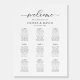 Classic Calligraphy Script Wedding Seating Plan. Welcome sign. Personalized Simple Minimalist Seating Chart for 90 guests. Just click the customize further link, shown under the text personalization area on the right, and choose your custom color background. This sign poster template makes it fast and easy to create stunning additions to your wedding decor. Signs can be enlarged, there are many sizes to choose from, as well as options for custom framing and matting.