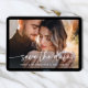 These stylish and elegant wedding save the date cards feature sweet and modern script calligraphy, with two of your favorite photos and a scannable QR code on the back.