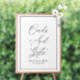 elegant black script, minimal black and white wedding, Cards and Gifts sign. The text and colors can be edited.
