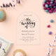 This elegant black-and-white wedding invitation is perfect for a modern wedding. The simple design features elegant black calligraphy on a clean white background.