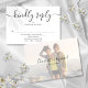 A simple elegant black and white signature script RSVP card with your details set in chic typography and your names, date and special photo on the reverse. Designed by Thisisnotme©