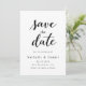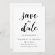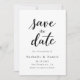 This elegant black-and-white wedding save-the-date card is perfect for a modern wedding. The simple design features elegant black calligraphy on a clean white background. The card also includes a QR code for the wedding website on the back.