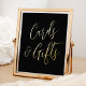 Simple and elegant wedding sign featuring the phrase "Cards and Gifts" displayed in a gold foil script with a black background. Personalize the black and gold foil cards and gifts sign with custom text such as your names, wedding date, thank you message, etc. The sign can also be used for other events such as bridal showers, baby showers, birthday parties, & more!