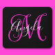 Elegant Script Black White Hot Magenta Monogram Mouse Pad