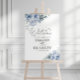 watercolor floral dusty blue and white design, wedding welcome sign. The text and colors can be edited.
