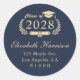 Elegant Script Blue Gold Graduation Return Address Classic Round Sticker