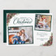 Elegant Script Botanical 2 Photo Christmas Green Holiday Card