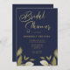 Elegant script botanical gold navy bridal shower invitation