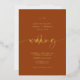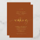 Simple elegant script brush boho terracotta wedding gold real foil invitation.