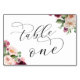 Adore Pink & Burgundy Floral Wedding Reception 1 Table Number - written out in a beautiful fancy calligraphy script font. An elegant, chic, yet simple design in a black font and any background color you choose. Just click the customize further link, shown under the text personalization area on the right, and choose your custom color background. This sign table number template makes it fast and easy to create stunning additions to your wedding decor. numbers are included for tables 1-20, if you need more numbers please message me on zazzle.
