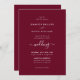 We have hundreds if not thousands of different invitation designs like Burgundy Wedding Invitations and Burgundy And Gold Wedding Invitations. However, if none of these designs match your needs you can customize any existing design or make your own from scratch so that you can set the stage for a memorable celebration.