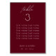 Elegant Script Burgundy Wedding Seating Chart Table Number
