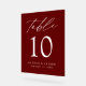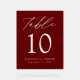 Elegant Script Burgundy Wedding Table Number Acrylic Sign