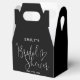This elegant black and white script bridal shower favor box can be personalized with your name and special date. Designed by Thisisnotme©