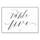 Simple Elegant Calligraphy Script Wedding or Dinner Party Table Number Five written out in beautiful flowing fancy letters. A stylish yet simple formal design in black and white or any background color you choose. Just click the customize further link, shown under the text personalization area on the right, and choose your custom color background. This sign poster template makes it fast and easy to create stunning additions to your wedding decor. Signs can be enlarged, there are many sizes to choose from, as well as options for custom framing and matting. Welcome to our wedding custom signage.