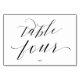 Simple Elegant Calligraphy Script Wedding or Dinner Party Table Number Four written out in beautiful flowing fancy letters. A stylish yet simple formal design in black and white or any background color you choose. Just click the customize further link, shown under the text personalization area on the right, and choose your custom color background. This sign poster template makes it fast and easy to create stunning additions to your wedding decor. Signs can be enlarged, there are many sizes to choose from, as well as options for custom framing and matting. Welcome to our wedding custom signage.