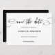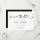 Modern and elegant design printed black and white script calligraphy save the date that can be customized with your text. Please click the "Customize it" button and use our design tool to modify this template. Check out the Graphic Art Design store for other products that match this design!