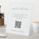 A Simple Elegant Script Capture the Love QR Code Wedding Pedestal Sign in black and white.