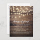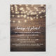 An elegant country-themed announcement card with rustic wood and string lights. Personalize with your details in modern script typography. The reverse has been left blank for you to add a custom message.