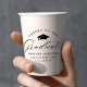Elegant graduation paper cups featuring a graduation cap with the phrase "Cheers to the Graduate" in a black calligraphy script on a cream background. Personalize the modern graduation paper cups with the graduate's name, school name, and graduation year. The design repeats on the back. The simple graduation cups are perfect to use for your high school or college graduation party.