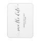 A typography Save the Date magnet featuring black calligraphy with swashes and hearts over a white background. The simple and minimal layout and lots of open space give this design a modern feel and the calligraphy lettering and hearts give it a romantic twist.
