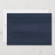This elegant wedding save the date card features swirly modern calligraphy in white, on a rich, dark blue background.