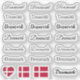 Countour Stickers: Elegant script Name set - Denmark & Danish Flag - custom name in 6 x 3 different handwriting personal fonts. Cool black handwritten stickers allows you to mark your items, put name on with personal touch / name can be costumised