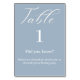 elegant script dusty blue Fun facts wedding table numbe, did you know wedding fact table number click the personalized button to change each number and fun fact that you want to add.