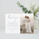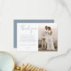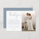This simple elegant wedding thank you card features a photo and dusty blue color theme. The photo is for placement purposes only and can be replaced with any photo of your choice. Customize the text with your own personal thank you message for all your wedding guests. #weddingthankyou #dustybluewedding