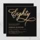 Elegant Script Eighty Black Gold 80th Birthday Invitation
