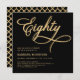 Elegant Script Eighty Black Gold 80th Birthday Invitation