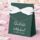 Elegant wedding favor box featuring stylish signature script names and special date set in modern typography on an emerald green background. You can personalize with your own thank you message under the lid. A perfect way to say thank you to your guests! Designed by Thisisnotme©