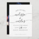 This simple black and white photo save the date features your names in elegant script calligraphy with flourishes and classic typography, and your favorite engagement photo on the back, and is easy to customize with your own wedding information. This is the perfect save the date for a formal, romantic, classic, or modern wedding.