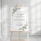 a modern eucalyptus greenery foliage frame and black script text. The text and colors on this sign poster can be edited.