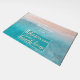 This family name and address in elegant white script gives your family door mat at the beach house a breath taking, beautiful look. The design is an overhead photograph of a wave caressing the shoreline and leaving behind a trail of white foam. The photograph captures the movement of the sea as aqua blue water meets a sand colored beach. Place it at the front door to welcome family and friends to the beach house for game days and reunions or give it as a customized gift to family and friends.
