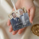 This beautiful ornament features a full photo display paired with an elegant script and serif text combination reading “Father of the Groom”, accented with a delicate heart element. Personalize it with your wedding date to create a truly meaningful keepsake. A soft, subtle fade at the bottom of the photo adds a graceful, timeless touch, making it perfect for display on the holiday tree or as a cherished memento. Ideal for gifting to the father of the groom, this ornament is a heartfelt way to honor her love, guidance, and support on your wedding day. Design by ©Moodthology Papery