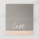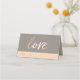 These table place setting cards feature a faux foil script font with the word love. Write the table number and name of your guest on the bottom of the card.