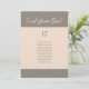 This elegant and simple table seating card features a faux foil script font in a pretty gray and rose gold color palette. Customize the table number and names.