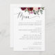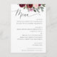 Create a beautiful dining experience for your guests with this elegant floral wedding menu card. Deep red and soft blush watercolor roses frame the top of the design, while refined script and classic serif text present each course with clarity and style. Perfect for wedding receptions, rehearsal dinners, plated dinners, or banquet style events. The clean white background and romantic floral artwork suit garden weddings, winery celebrations, fall weddings, and classic romantic themes.
