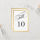 An elegant script table number design bordered in a wide gold frame for wedding receptions or other events. The table numbers are on both sides of the card. Create a separate card for each table needed.