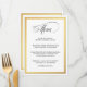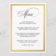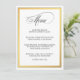 A beautifully elegant wedding menu card featuring calligraphy script text accents with a wide gold border surrounding your text. Simply edit the text with your menu information.