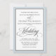 A beautifully elegant wedding invitation featuring calligraphy script text accents with a border in dusty blue surrounding your text. The simple, tasteful style works well for weddings in all seasons. Matching RSVP cards and other wedding products are available in this design. This invitation is a perfect choice if you are looking for something classic and traditional in black and white with a small touch of color to match your wedding theme.