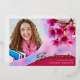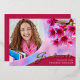 A unique photo graduation announcement card, featuring design elements of elegant handwritten style script with the word "Graduate" in real foil (foil color options are gold, silver and rose). The graduates photo is enhanced by a beautiful collection of pink raspberry colored flowers. The back of the card offers personalized text spaces for information about the graduation and future journey. To see more items like this, visit my store here at "www.Zazzle.com/LakeViewCardCo". Thanks