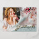 A unique photo graduation announcement card, featuring design elements of elegant handwritten style script with the word "Graduate" in real foil (foil color options are gold, silver and rose). The graduates photo is enhanced by a beautiful bloom of white, pink and red flowers on a dusty teal base color. The back of the card offers personalized text spaces for information about the graduation and future journey. To see more items like this, visit my store here at "www.Zazzle.com/LakeViewCardCo". Thanks
