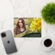 A unique photo graduation announcement card, featuring design elements of elegant handwritten style script with the word "Graduate" in real foil (foil color options are gold, silver and rose). The graduates photo is enhanced by beautiful yellow flowers on a forest green background. The back of the card offers personalized text spaces for information about the graduation and future journey. To see more items like this, visit my store here at "www.Zazzle.com/LakeViewCardCo". Thanks