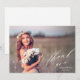 This elegant graduation thank you card features a full photo and elegant calligraphy. "Thank you" is written in pretty white script in the lower right corner, with the graduate's name and graduation year below. This white typography design overlays a full photo of the new graduate (horizontal/landscape orientation). The back is blank and can accommodate additional photos or a personalized note to recipients.