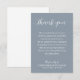 A simple dusty blue thank you card features a sample message you can use or change to your own words for custom thank you notes for your celebration of life, funeral or memorial.