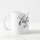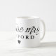 Black and white mug for the future mrs, with a pretty calligraphy font and a little black heart. Future mrs coffee mug personazlied with your new last name above a small black heart. Romantic coffee mug for the bride with her soon to be last name in an elegant font beneath future mrs.