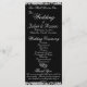 This romantic design features an elegant black background with glitter borders, wedding ceremony details & thank you on the front with wedding party members on the back. Also available with different colored backgrounds for your wedding theme colors. (Glitter is simulated in the artwork). Designed to coordinate with the "Two Shall Become One - Hearts, Doves & Glitter" Wedding Collection. To change details, click «Personalize». To move the text or change the text size, font, or color click «Click to customize further»